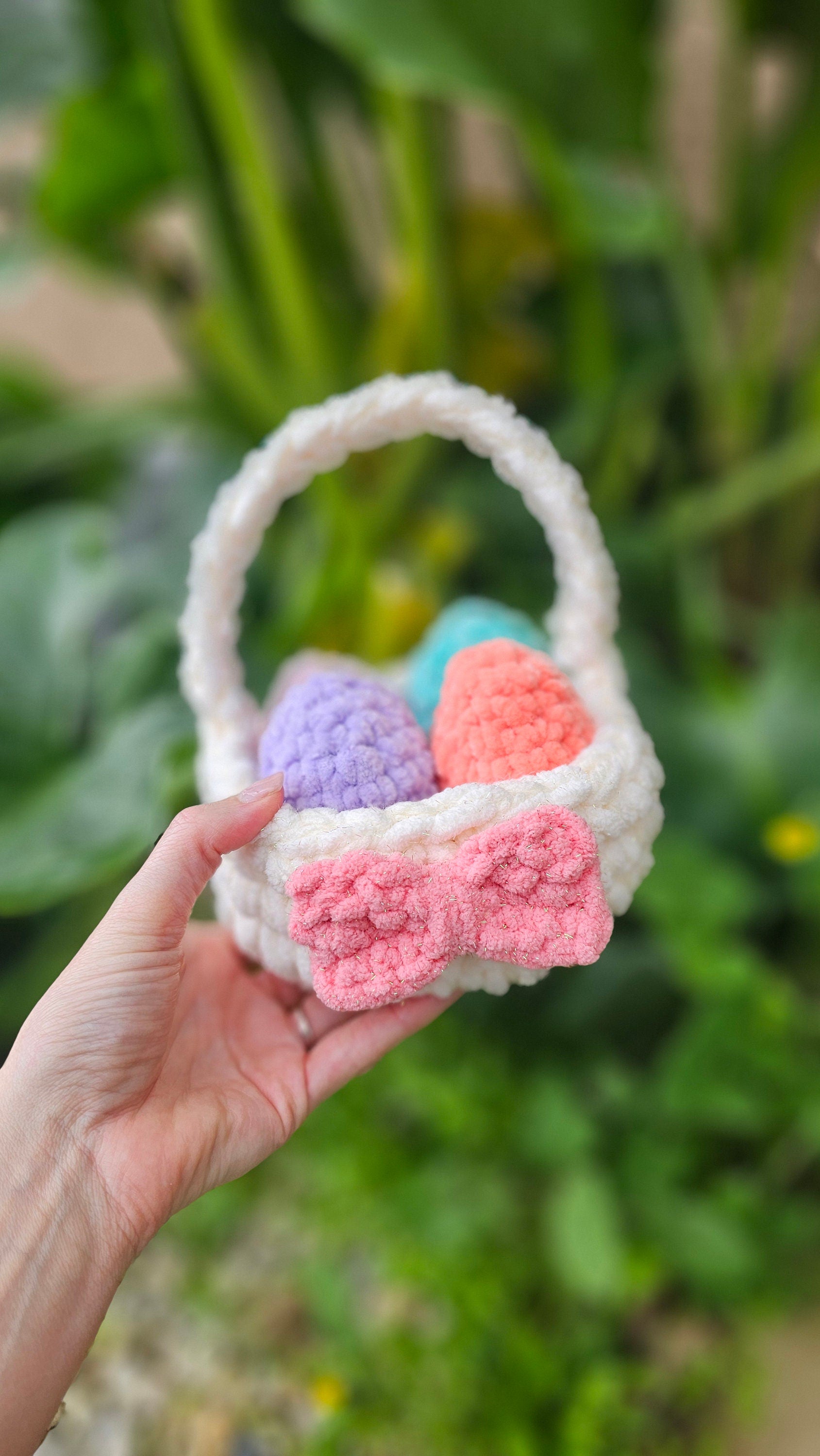 Easter Basket & Easter Egg Pattern listing here: https://knotsmerryyarn.etsy.com/listing/1693727611