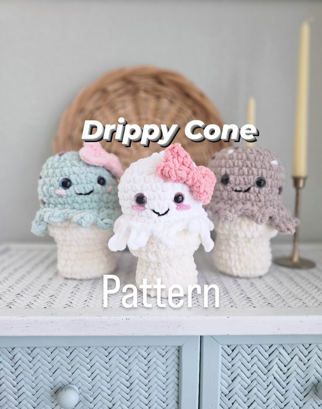 Are you ready to add some deliciously adorable flair to your crochet collection? Look no further than our "Drippy Cone" pattern! Whip up these delightful ice cream cones and let your imagination run wild with colorful flavors and toppings.