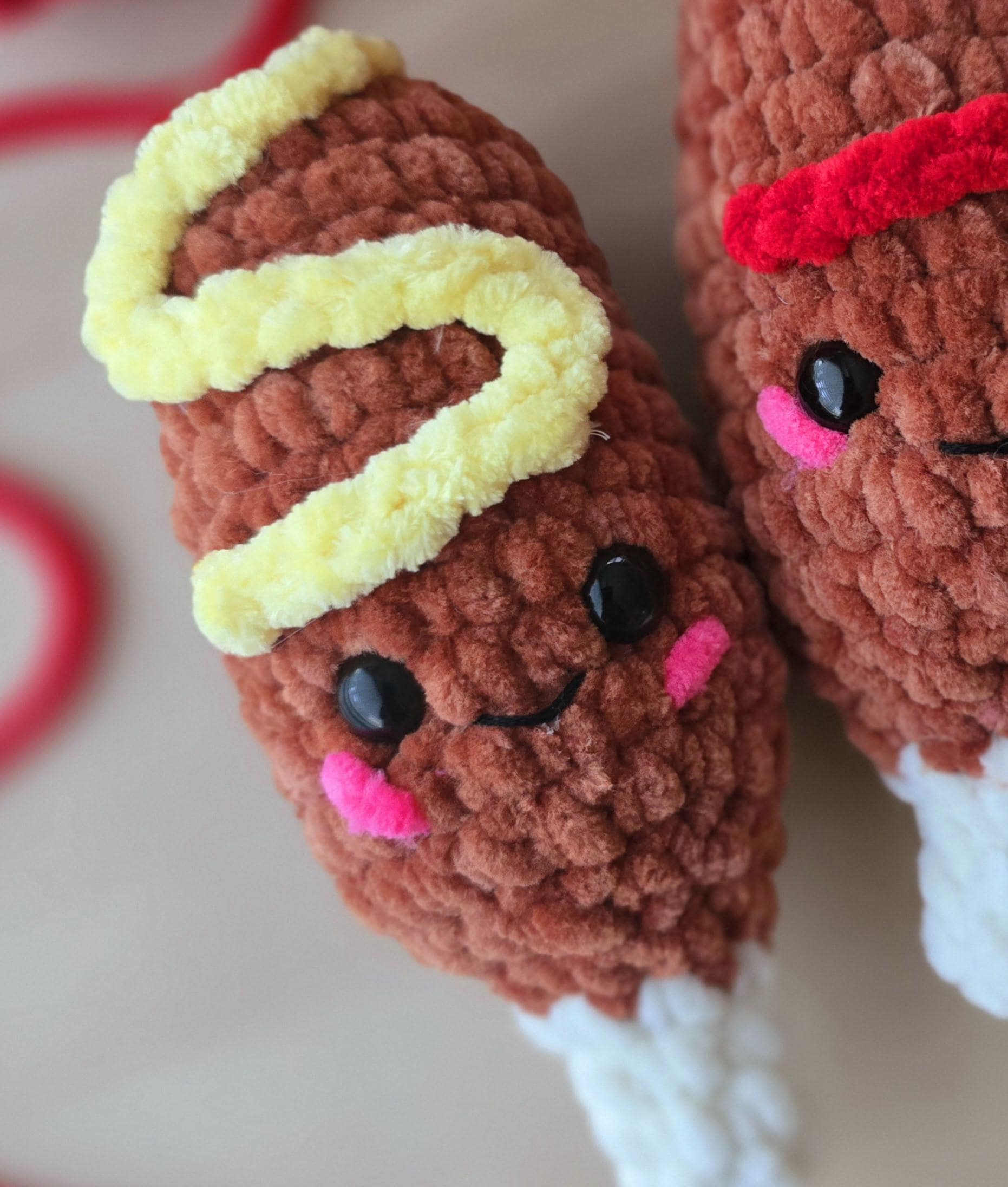 Mini Corn Dog Crochet Pattern, No Sew, Amigurumi, Crochet Food, PDF Download, KnotsMerryYarn