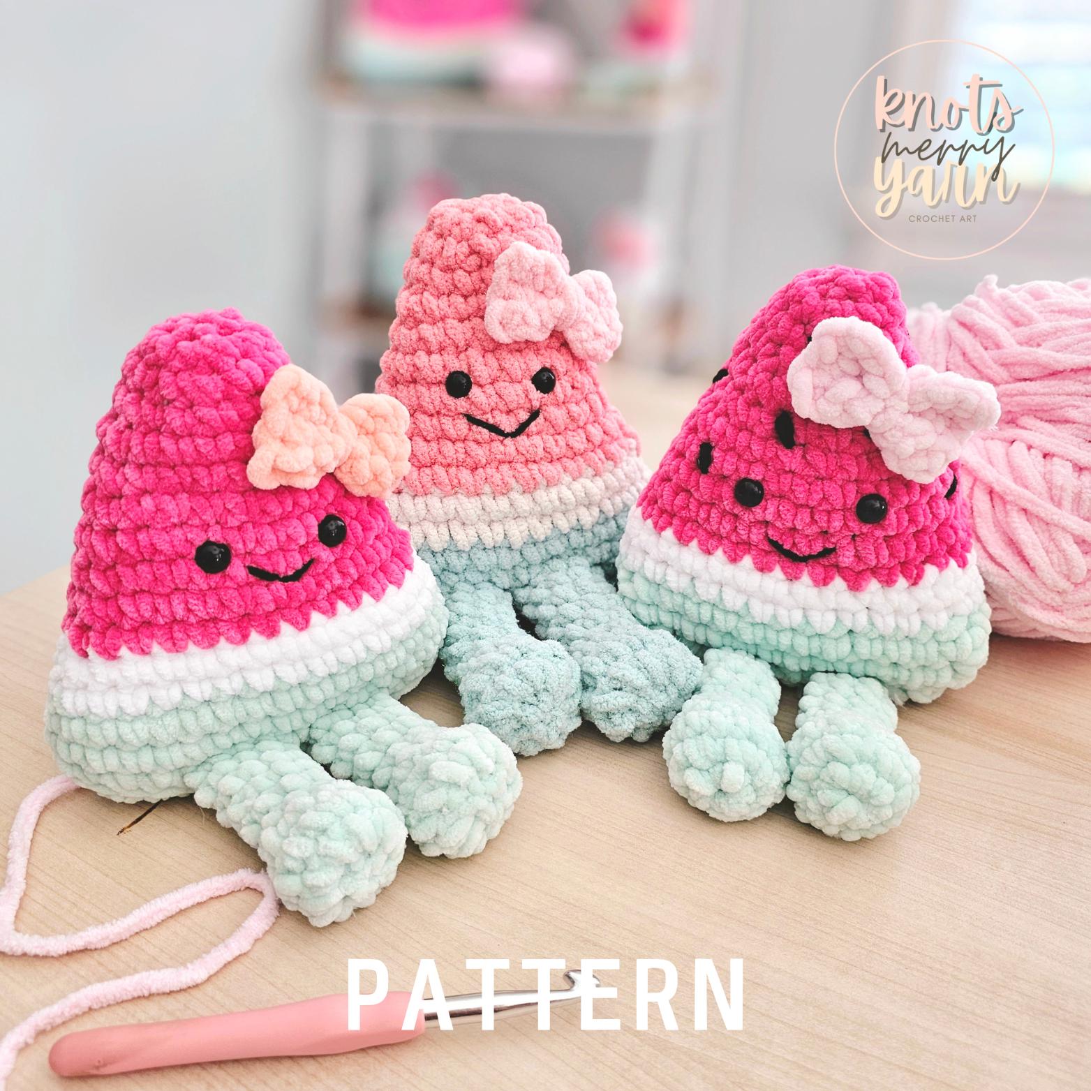 Watermelon Crochet Pattern, No Sew, Amigurumi Watermelon, PDF Download, KnotsMerryYarn